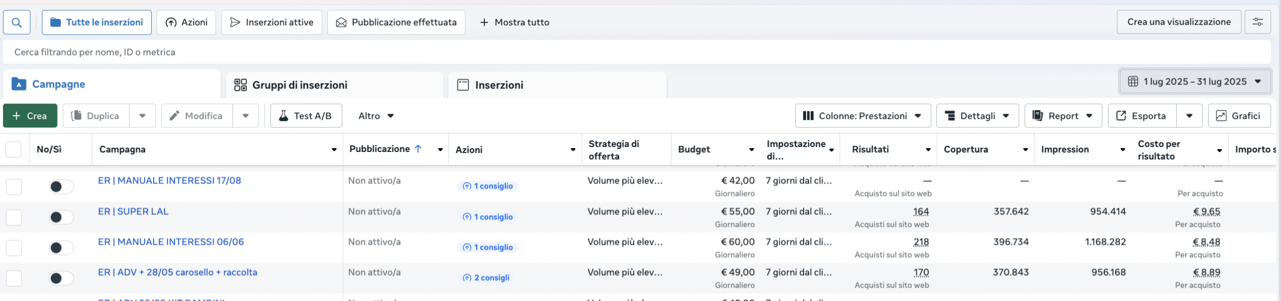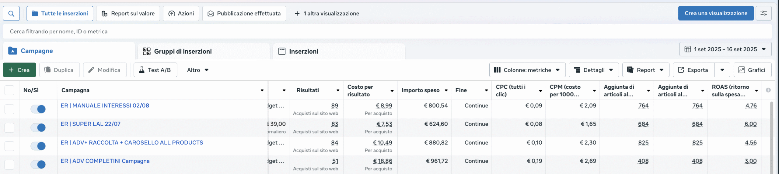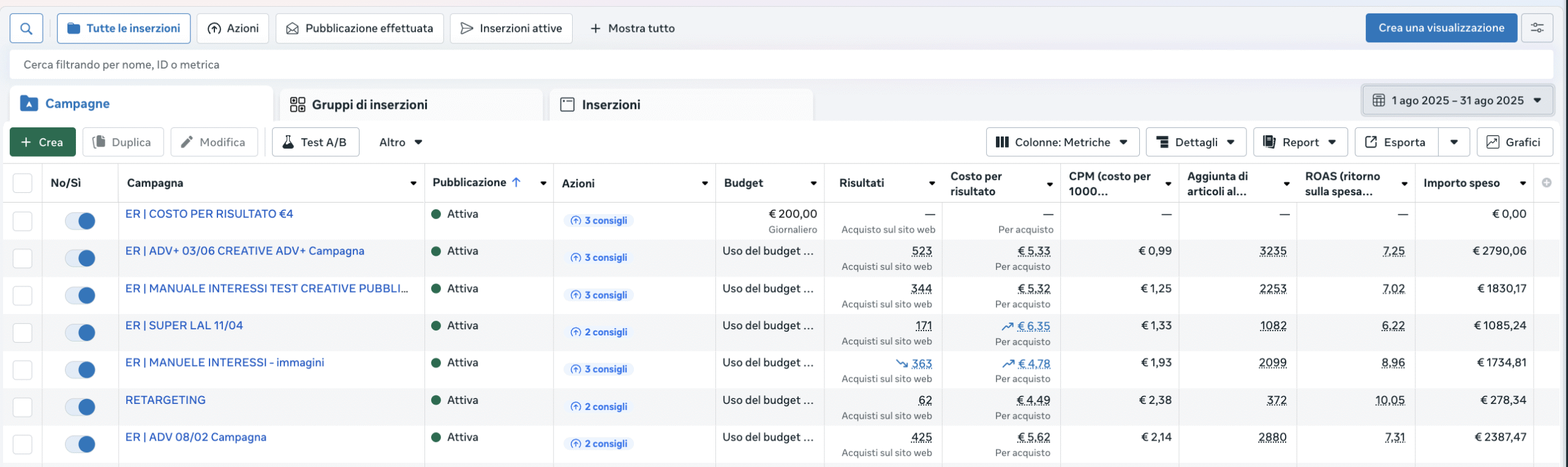 Ti mostro anche i dati del Business Manager di Facebook, perché sono numeri autentici e verificabili, che nessuno può falsare.