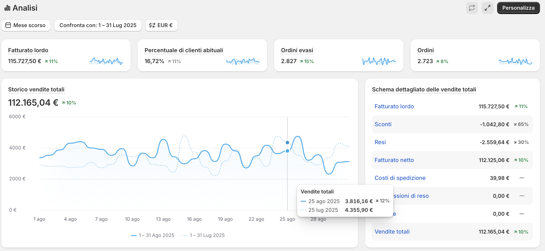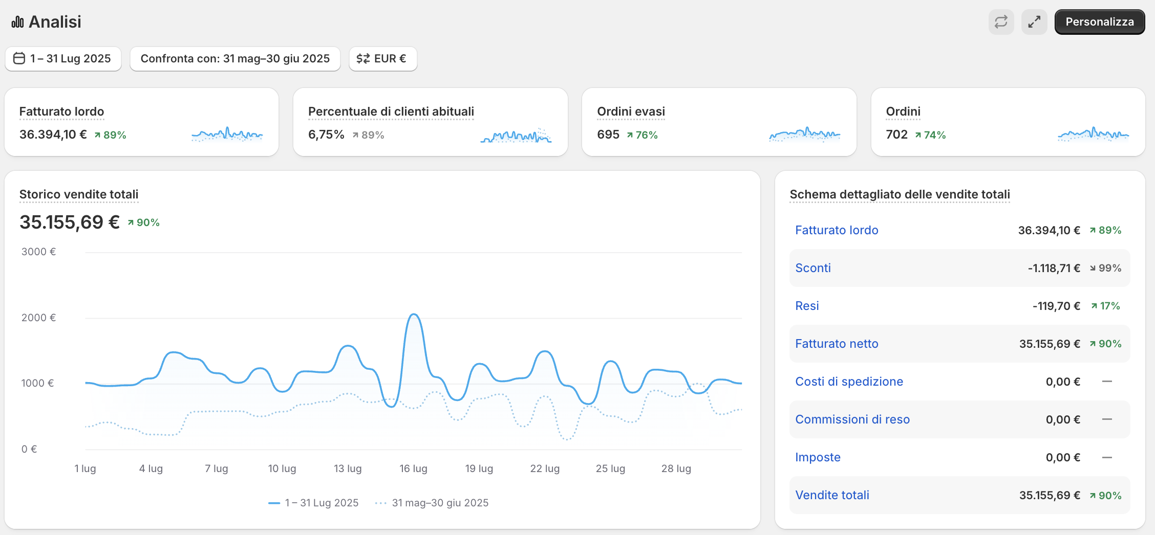 Per questo non mi limito a mostrarti solo le dashboard di Shopify, che purtroppo molti alterano facilmente.